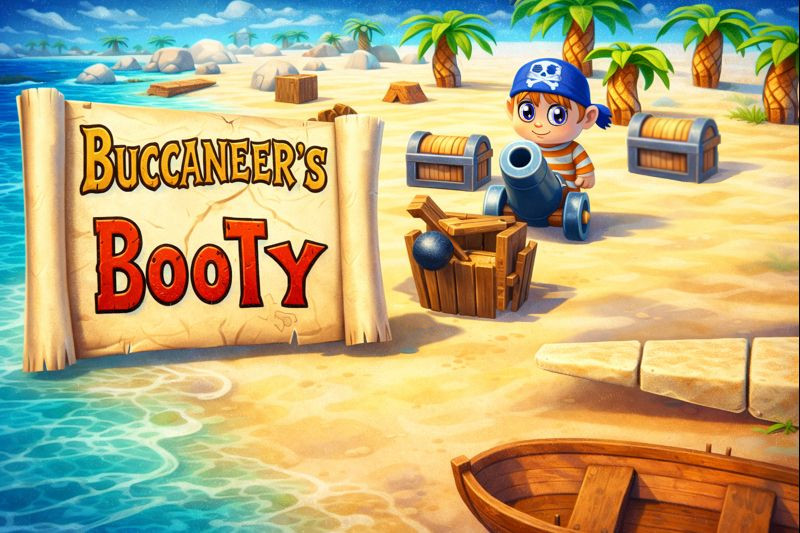 This is a Sokoban-style puzzle game with pirate theme. Fire cannons, move, destroy and sink elements across 40 levels. Light the fuse, solve the puzzle, hide the treasure.